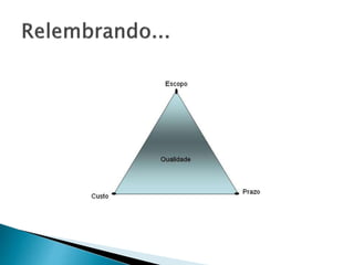 O documento discute a importância de cronogramas para o gerenciamento de projetos, destacando que cronogramas eficazes requerem conhecer as tarefas e suas durações estimadas, e responder se o projeto pode ser entregue em determinada data ou quando deve começar para ser entregue em uma data específica, sendo ideal iniciar o projeto o mais cedo possível para entregá-lo no menor prazo com folgas mínimas, para evitar atrasos.