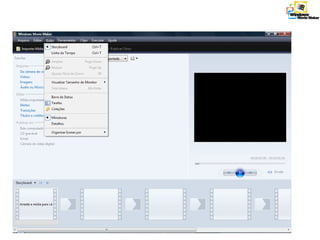 O documento descreve um cronograma de um curso sobre tecnologias na educação com 8 encontros ao longo de 4 semanas. Os encontros incluem oficinas sobre ferramentas Google como Gmail, Blogger, Docs e ferramentas de edição de imagem, som e vídeo como Movie Maker. O trabalho final envolve a criação de uma animação sobre como as TICs podem ser usadas no currículo escolar.