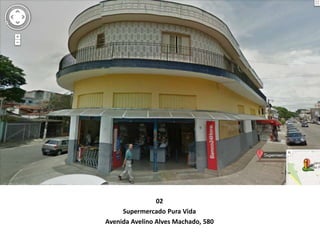 O documento lista 16 estabelecimentos comerciais em Guarulhos, incluindo supermercados, padarias, uma churrascaria, mercado e escola, fornecendo endereços e informações básicas sobre cada um.