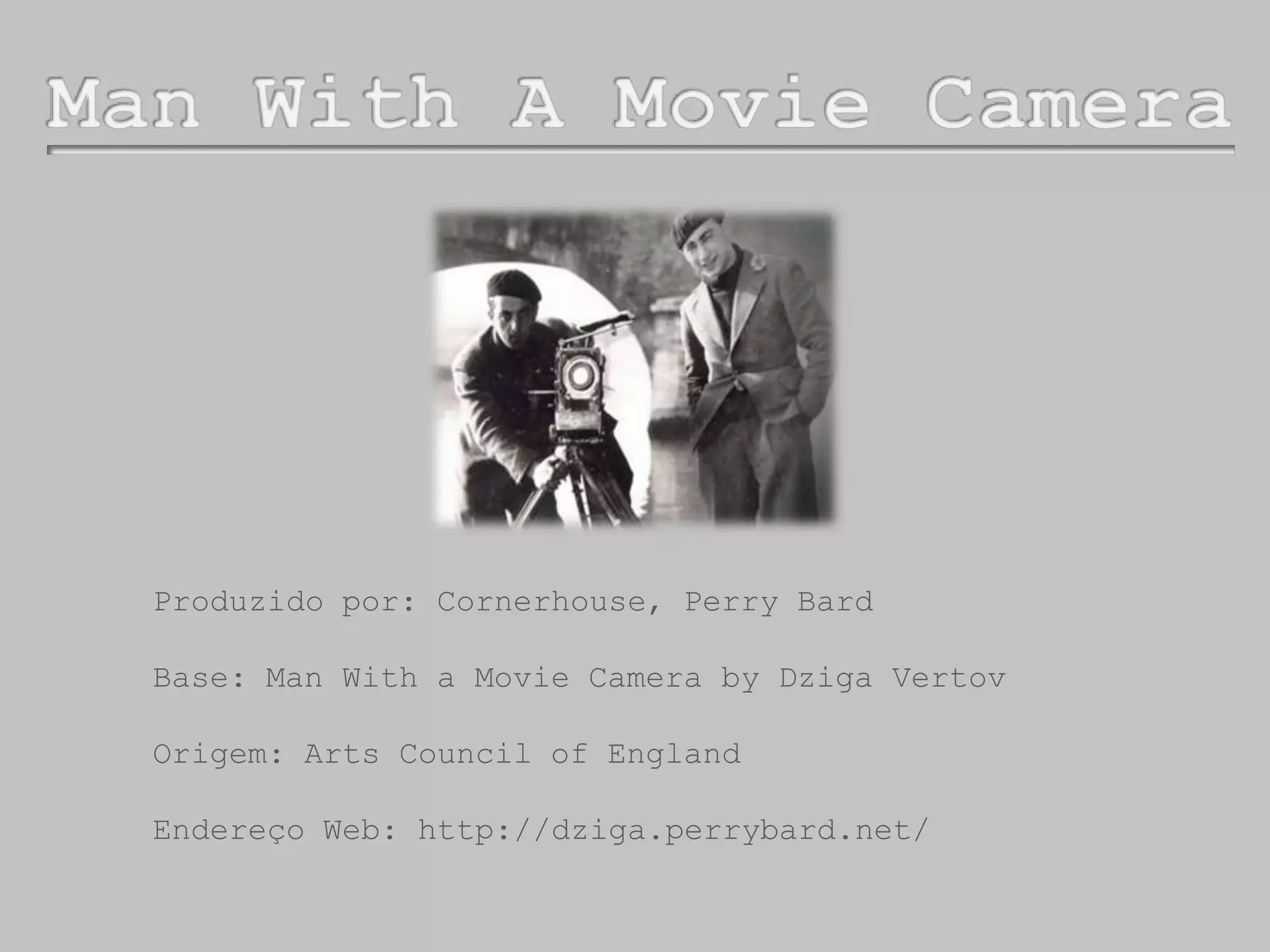 Este documento descreve o projeto "Homem com uma Câmara de Filmar: O Remake Global", que convida pessoas de todo o mundo a gravar novas cenas baseadas no filme original de Dziga Vertov e enviá-las para combiná-las em um novo filme colaborativo. O site usa uploads de usuários para criar algo novo a partir do filme clássico, unindo passado e presente de forma criativa através da contribuição global.