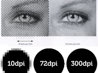 O documento descreve o processo de produção gráfica no passado, que era lento e caro, envolvendo vários profissionais e etapas como rascunho, fotocomposição, montagem, provas e impressão. O documento também explica termos como CMYK, LPI, DPI e PPI e fatores a serem considerados na escolha do processo de impressão adequado.