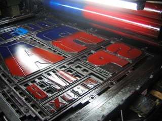 O documento descreve os principais processos de impressão, incluindo tipografia, litografia, flexografia, rotogravura, silk-screen, xerografia e impressão a laser. A litografia deu origem ao processo off-set moderno, que usa o princípio da repulsão entre água e tinta. A tipografia usa tipos móveis de metal para compor textos, enquanto a rotogravura grava imagens em baixo-relevo em placas de metal.