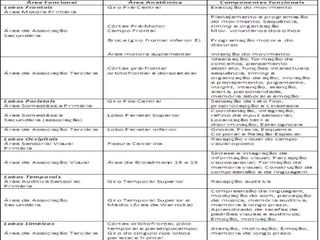 Áreas de associação: estão relacionadas com as funções psíquicas