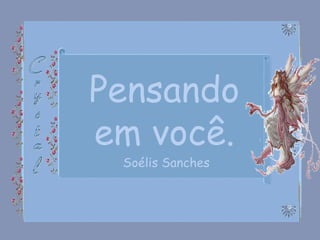O documento é uma carta de apoio emocional de Soélis Sanches para alguém que está se sentindo triste ou precisando de companhia. Ela oferece seu apoio emocional em vários cenários, como chorar, sorrir, amar, reconstruir após se sentir acabado, e ouvir palavras de amor. Ela pede para ser chamada sempre que a pessoa precisar de ajuda ou companhia.