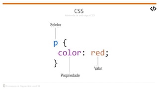 O documento explica os principais seletores e propriedades em CSS, como seletores de tipo, classe e ID; pseudo-classes como :link, :visited, :hover e :active; ordem de precedência dessas pseudo-classes e regras de herança e precedência em CSS.