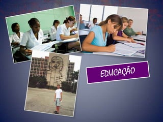 Cuba é uma ilha localizada no Caribe governada por um regime socialista de partido único desde 1959. O documento descreve a localização geográfica, política, cultura, economia, saúde e educação de Cuba, destacando que Cuba tem um sistema de saúde e educação universalmente acessíveis, apesar de sua economia atrasada.