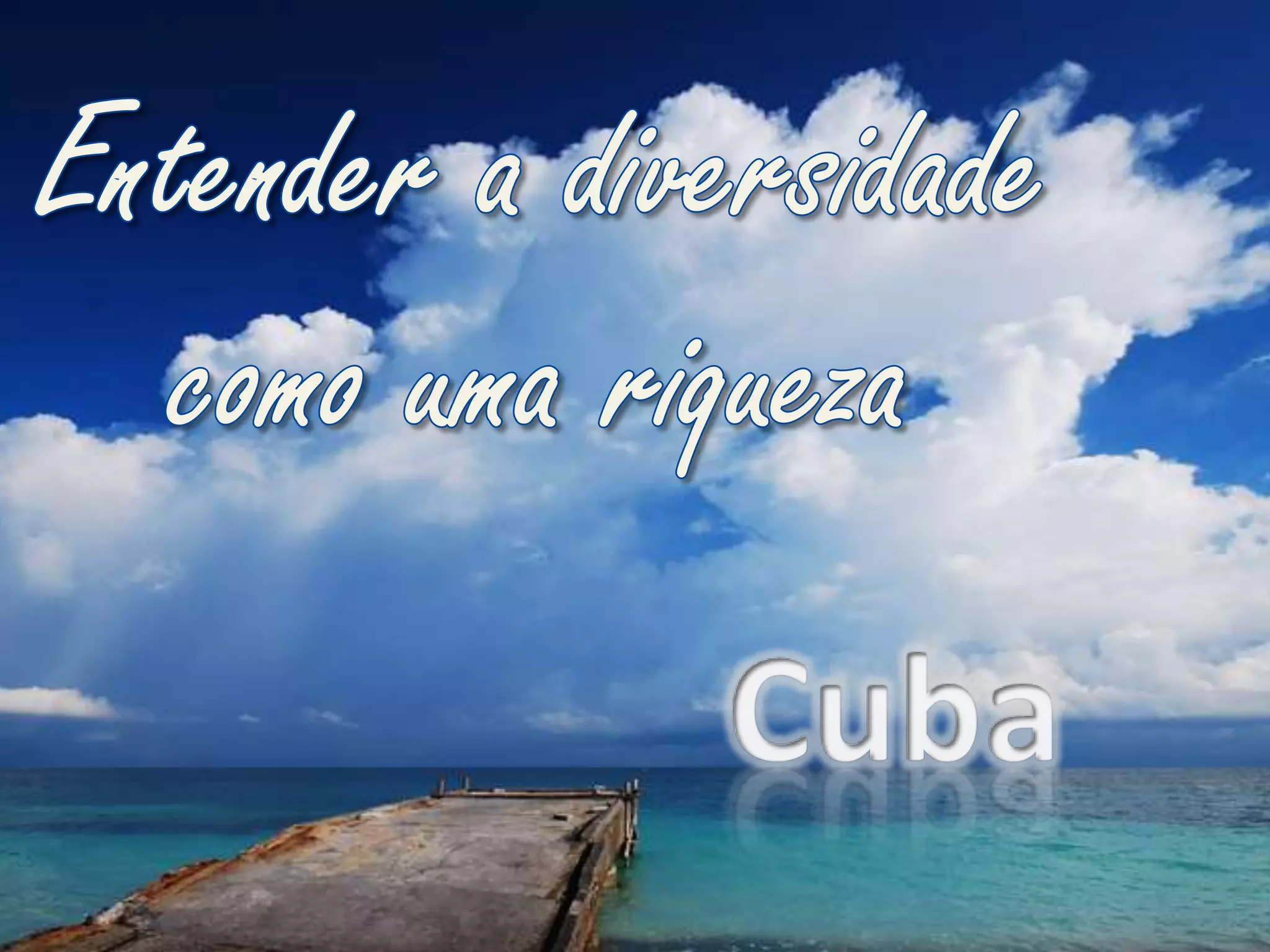 Este documento fornece um resumo da história, geografia, clima, demografia, cultura, economia e indústria de Cuba. Começa com a chegada de Colombo em 1492 e descreve a luta pela independência de Espanha e dos Estados Unidos. Apresenta as principais cidades, vegetação e animais do país.