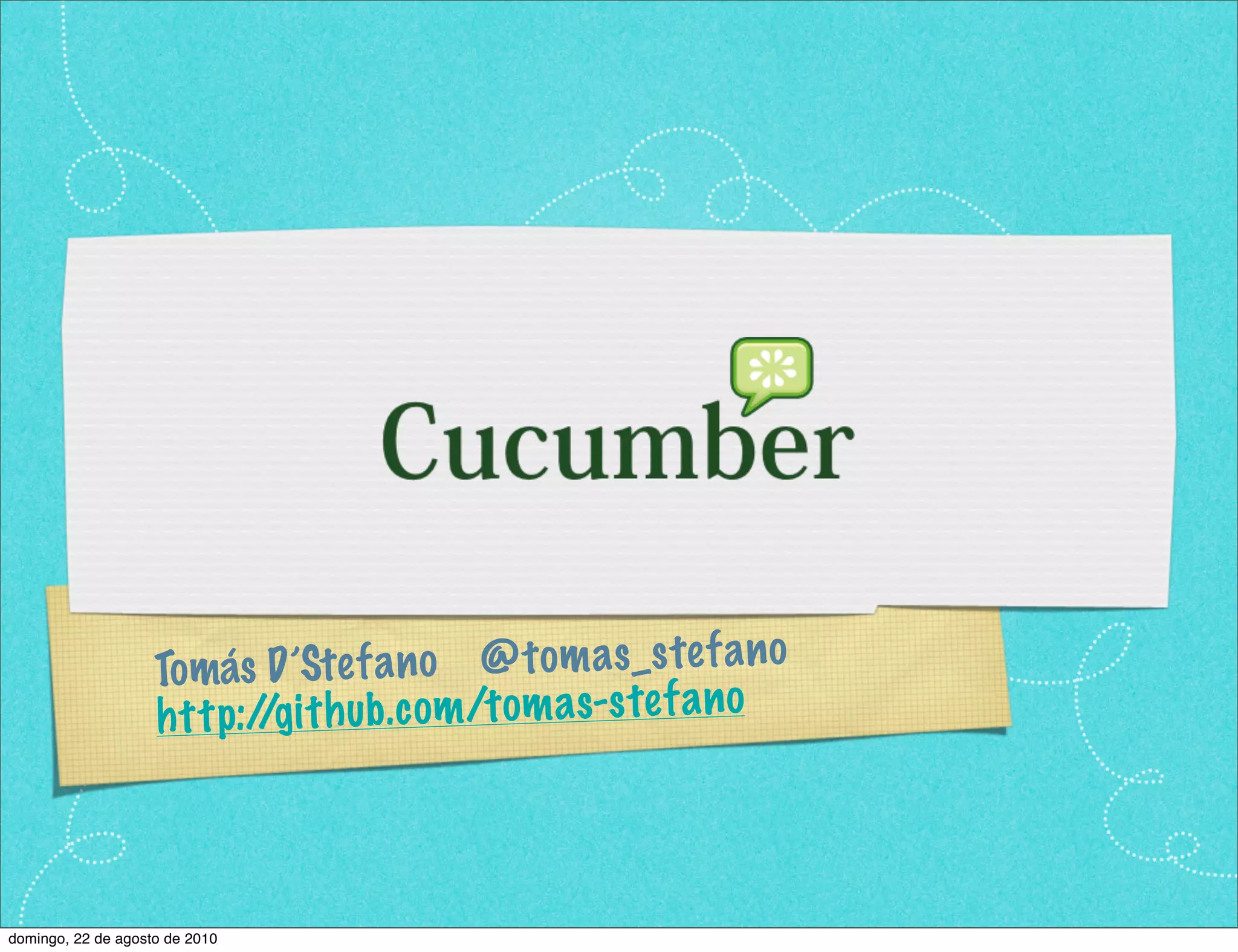 Este documento apresenta Tomás D'Stefano, fundador da SuceSSoft e desenvolvedor em Python e Ruby. Ele discute princípios ágeis como foco nas pessoas ao invés de processos e ferramentas. Também aborda tópicos como BDD, comunicação, assumir premissas de software e como aumentar o engajamento entre clientes e equipes.