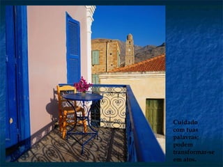 Este documento discute como nossos pensamentos, palavras e ações podem se transformar em hábitos e características e, eventualmente, moldar nosso destino. Também enfatiza a importância de semear sementes positivas através de nossos atos e palavras para colher bons frutos.