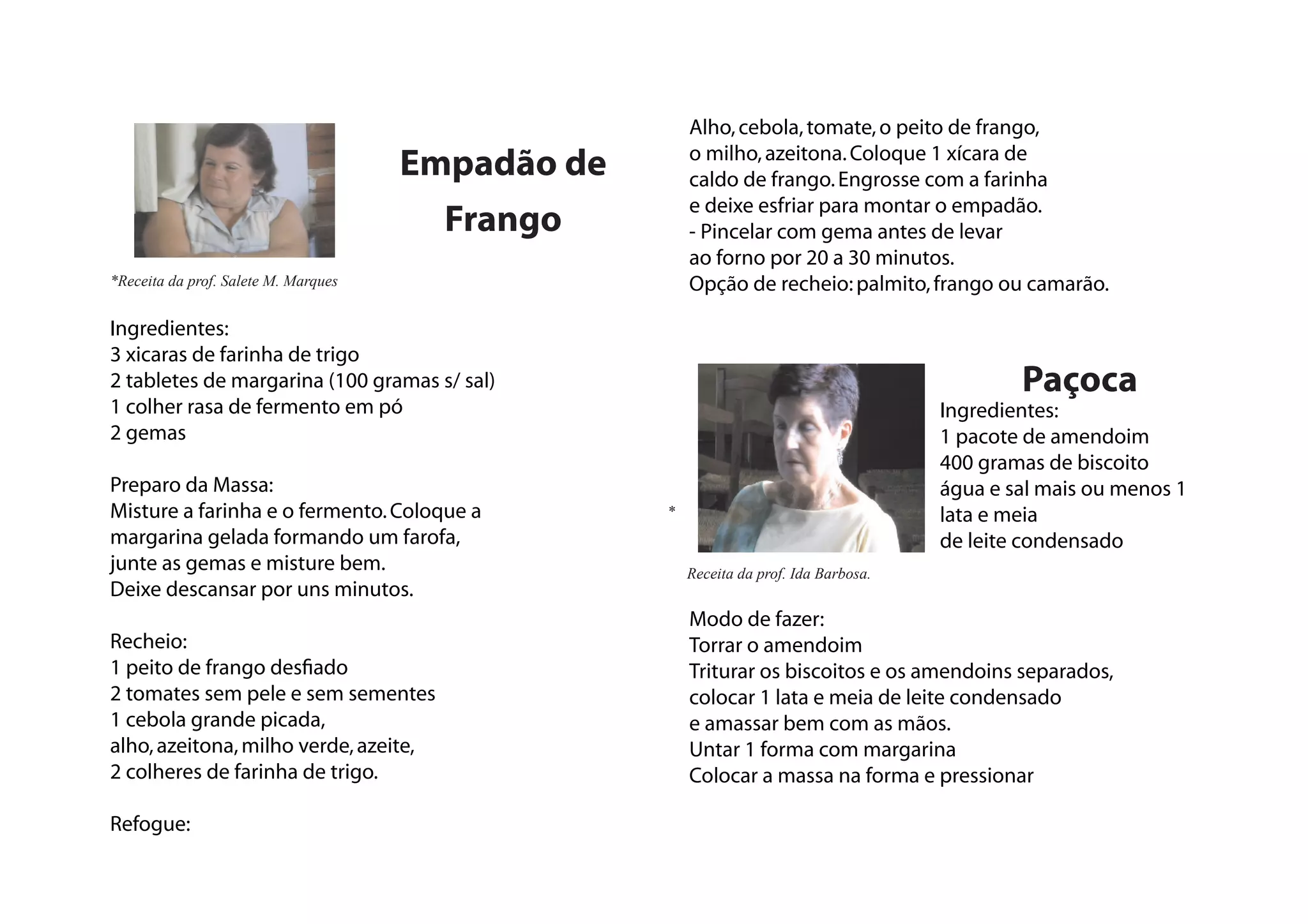 1) O documento contém receitas de empadão de frango, paçoca, torta de morango e sopa paraguaia.