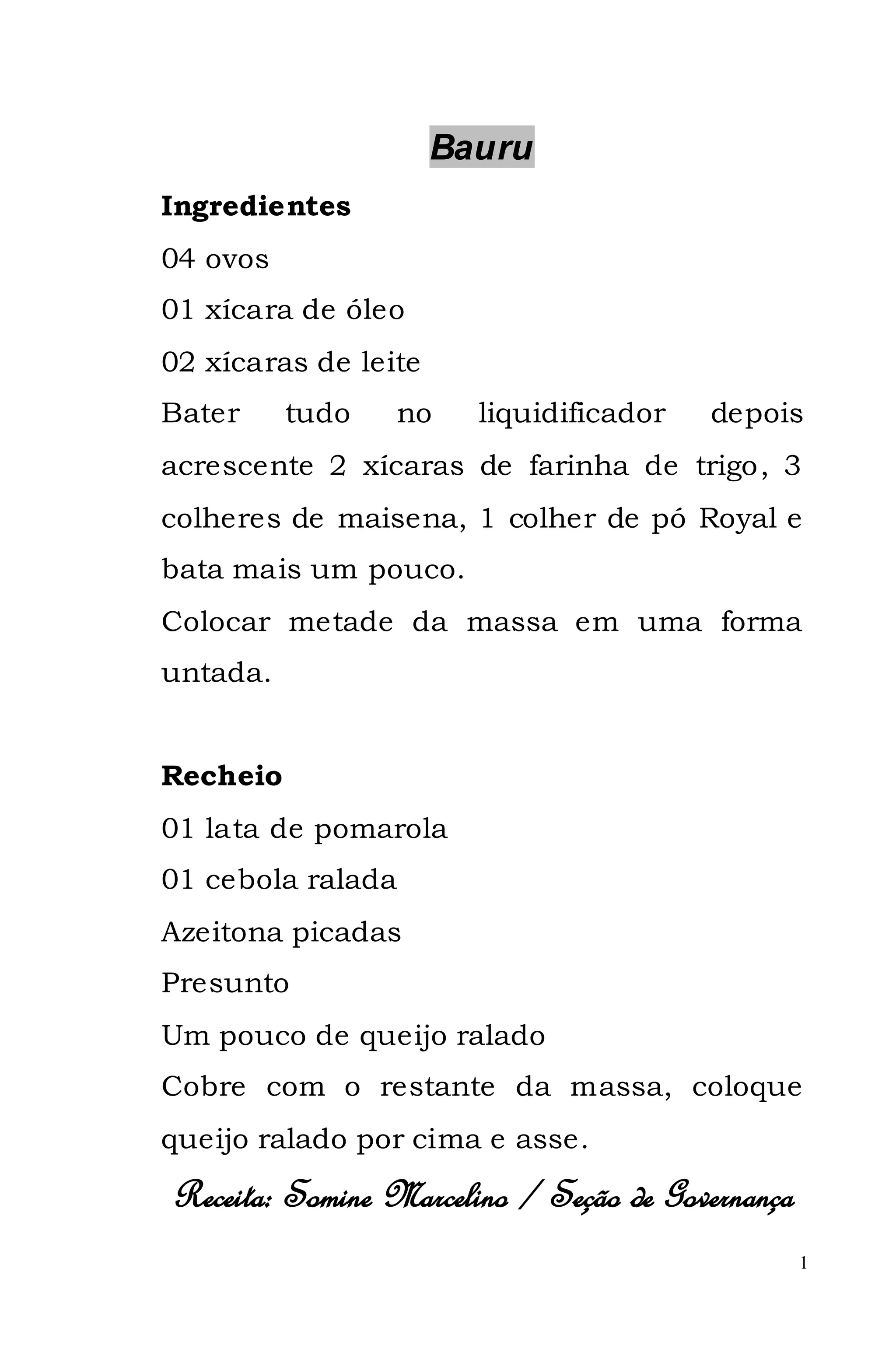 Este documento contém 15 receitas de tortas, pães e pratos salgados. As receitas variam de Bauru de Forno, Pão temperado para churrasco, Frango desossado recheado até Torta de escarola com queijo. A maioria das receitas contém instruções detalhadas sobre os ingredientes e modo de preparo para fornecer pratos completos e saborosos.