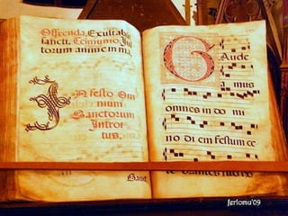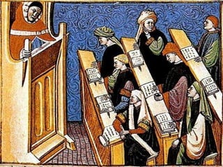 O documento descreve as transformações culturais e religiosas da Europa medieval. Discutiu a influência da Igreja Católica na cultura, as universidades medievais, as faculdades e estudos, as realizações culturais como direito, filosofia, ciências, música e literatura, e os estilos arquitetônicos românico e gótico.
