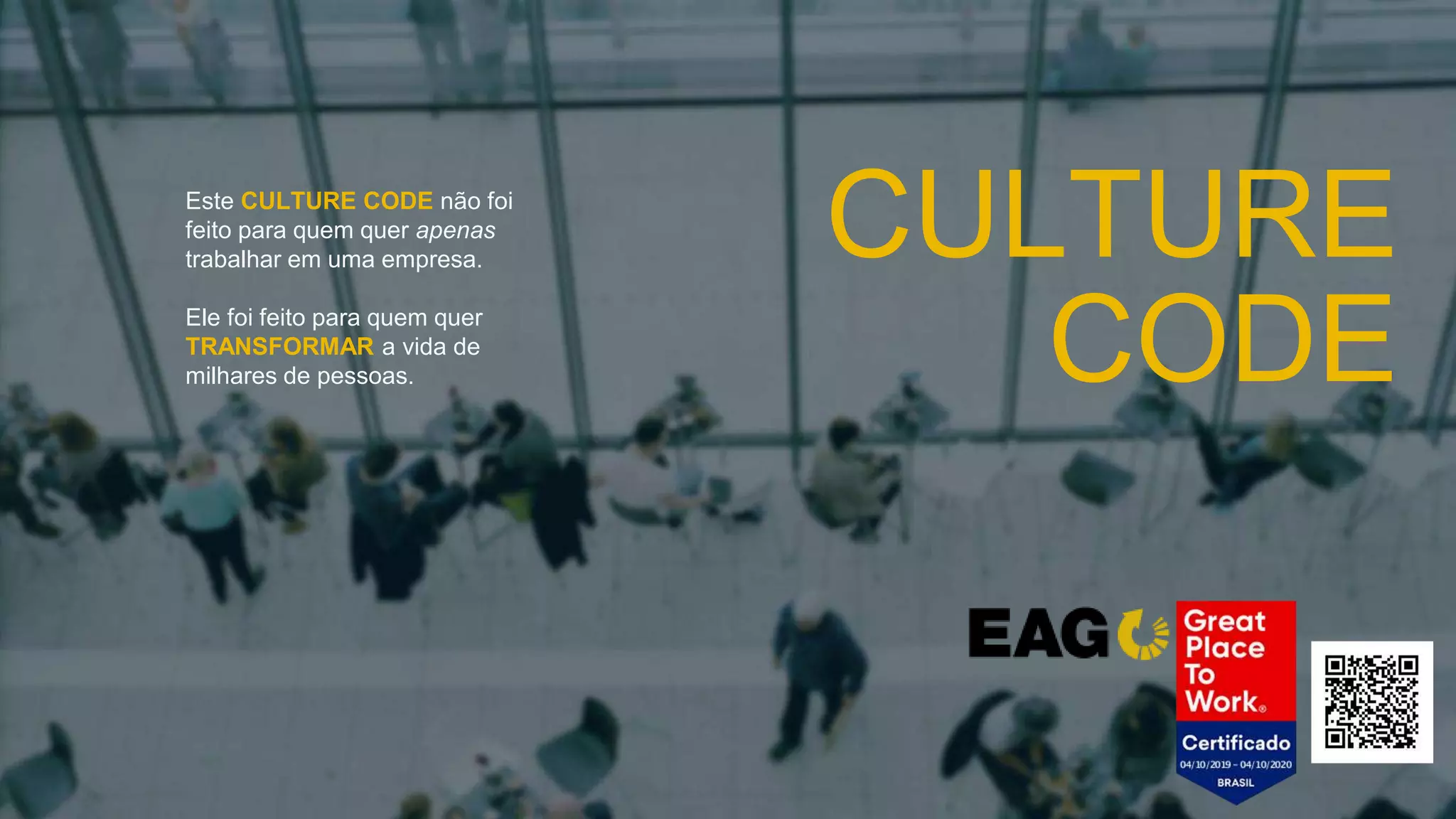 Este documento descreve o código cultural de uma empresa que visa transformar a vida de milhares de pessoas através do desenvolvimento de donos de pequenas e médias empresas. O código é baseado em valores como gratidão, legitimidade, compromisso com o cliente, intensidade, senso de dono e autodesenvolvimento, e visa criar um time comprometido com resultados, aprendizado contínuo e resolução de problemas.