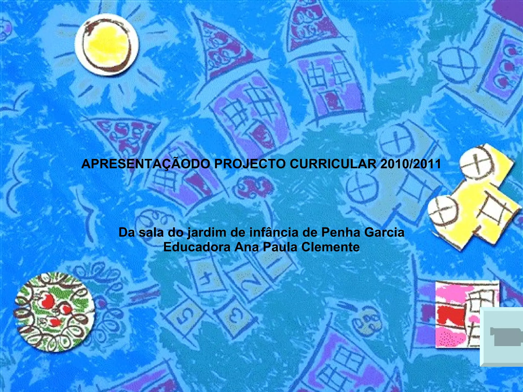 Este documento apresenta o projeto curricular para o ano letivo 2010/2011 de uma sala de jardim de infância. Descreve a caracterização do grupo de crianças, as opções educativas, metodologias, organização do ambiente, conteúdo das áreas, avaliação, relação com as famílias e divulgação de informações. Tem como objetivo proporcionar uma educação de qualidade e promover a colaboração entre a escola e as famílias.