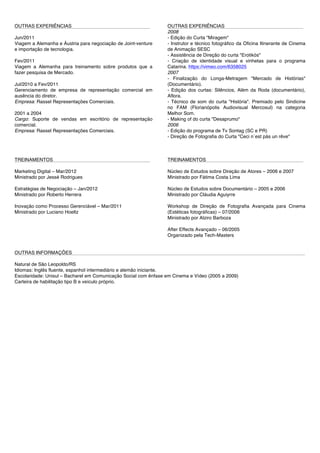 Marcos Elias Berghahn possui experiência em marketing digital, storytelling, pós-produção de filmes e direção. Seu currículo mostra que ele trabalhou em empresas como APTA Resinas Termoplásticas e Otto Desenhos Animados e possui habilidades em pesquisa, comunicação, edição de vídeo e direção.