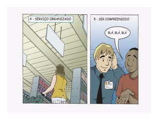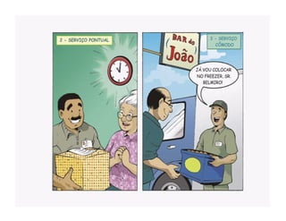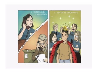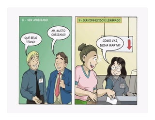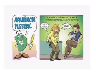 O documento fornece dicas e informações sobre atendimento e vendas. Aborda tópicos como qualidade no atendimento, comunicação com clientes, perfil de vendedores, etapas do processo de vendas e negociação de preços. O foco é ensinar técnicas para melhorar a relação com clientes e aumentar as vendas.