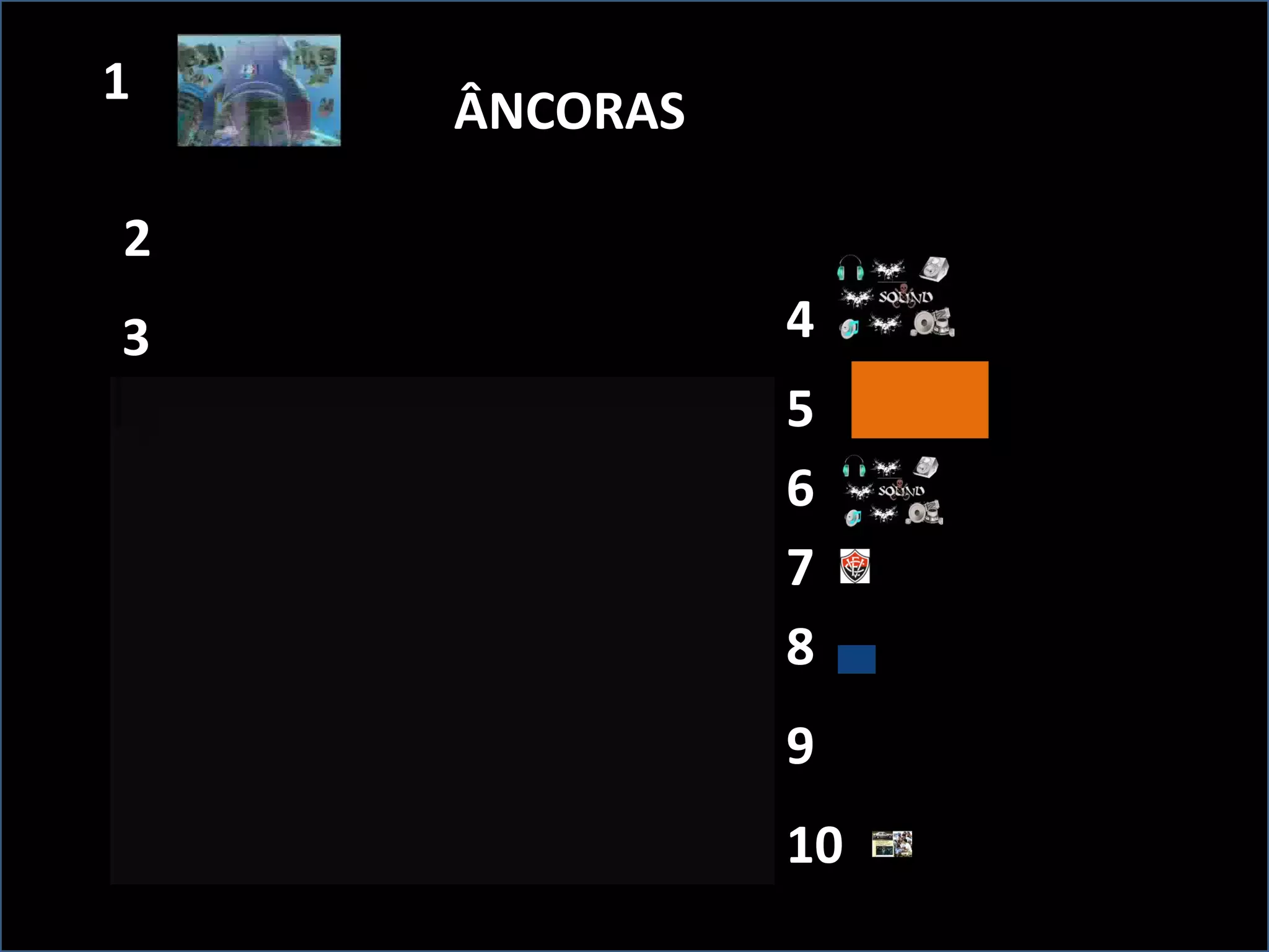 O documento classifica âncoras em quatro categorias: (1) a partir dos sistemas representacionais, (2) a partir da qualidade do efeito, (3) a partir da consciência como consciente ou inconsciente, e (4) a partir da origem do estímulo como interna ou externa.