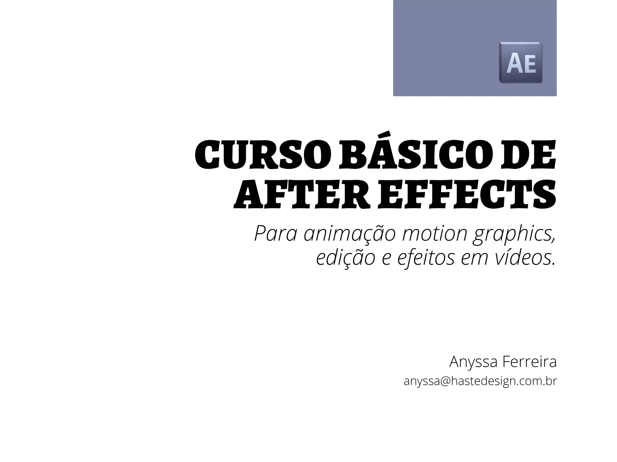 O documento é um curso básico de After Effects focado em animação, motion graphics e edição de vídeos. Ele explica conceitos essenciais como pós-produção, efeitos visuais, animação e estrutura do software, além de apresentar exercícios práticos para animar cenários e objetos. O curso visa ensinar a criar animações através da utilização de frames e técnicas de composição.