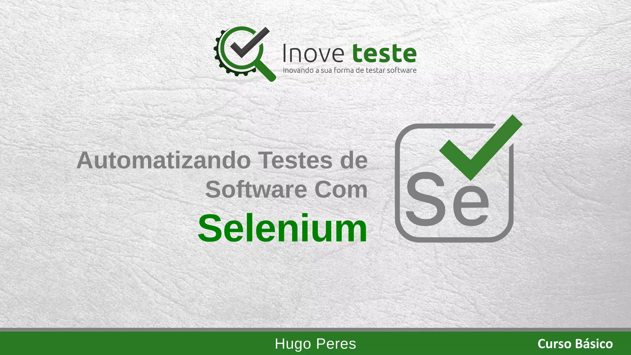 O documento apresenta um curso básico de automação de testes de software com Selenium, conduzido por Hugo Peres, que é um especialista com experiência na área. O objetivo do curso é ensinar a automação de testes, incluindo a elaboração e execução de scripts, com foco na eficiência e redução de falhas humanas. O curso é voltado para profissionais de qualidade de software que desejam aprimorar suas habilidades em automação de testes funcionais para aplicações web.