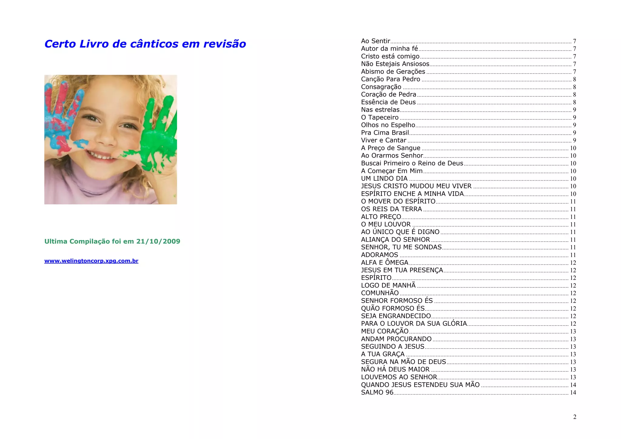 Este documento lista vários hinos religiosos e suas informações básicas, incluindo títulos, autores e datas. A última atualização da lista foi em 21 de outubro de 2009 no site www.welingtoncorp.xpg.com.br. A lista contém mais de 50 hinos.