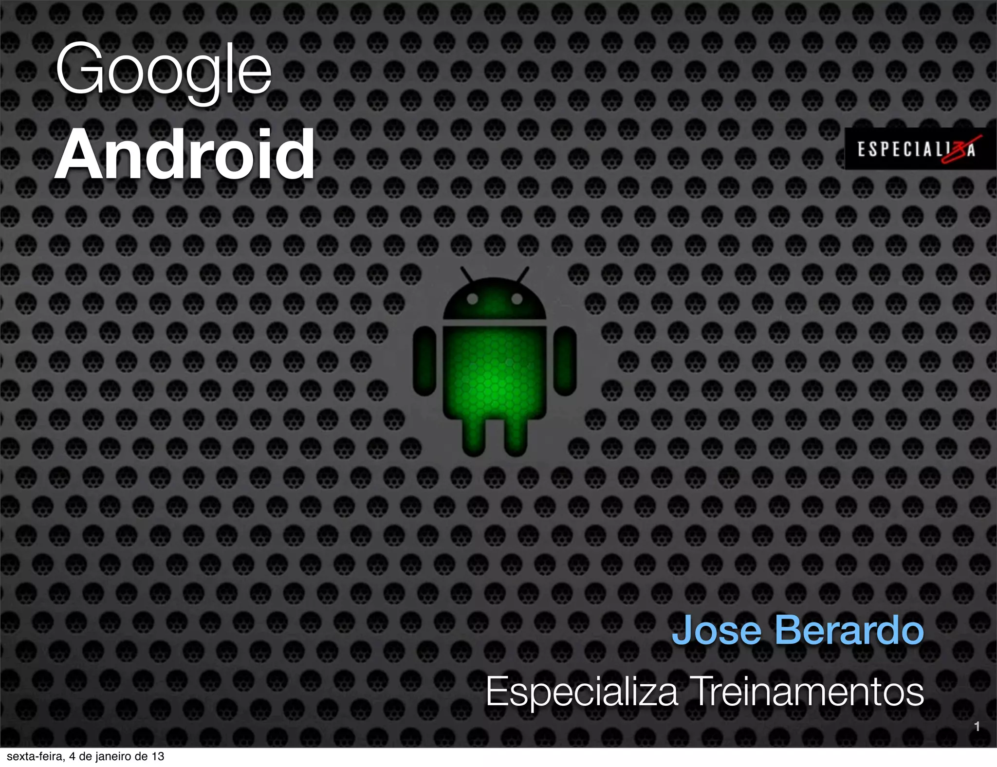 1) Ambiente de desenvolvimento, incluindo download de ferramentas como Android SDK, SDK Manager, AVD Manager e Eclipse ADT Plugin;