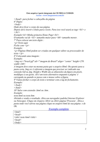Este documento fornece instruções sobre como criar páginas web básicas em HTML, incluindo: