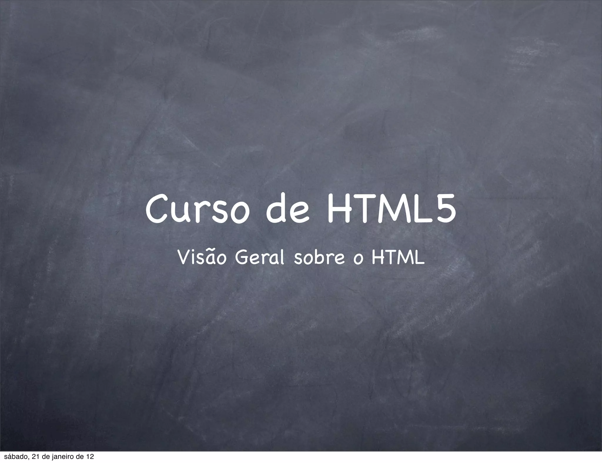 O documento fornece uma visão geral sobre HTML5, incluindo sua origem, a estrutura da web, e a função do W3C na definição de padrões web. Apresenta também uma introdução ao HTML e CSS, descrevendo tags básicas e a forma de integrá-los. O conteúdo é destinado a iniciantes na criação de páginas web, abordando elementos essenciais para a construção de sites.