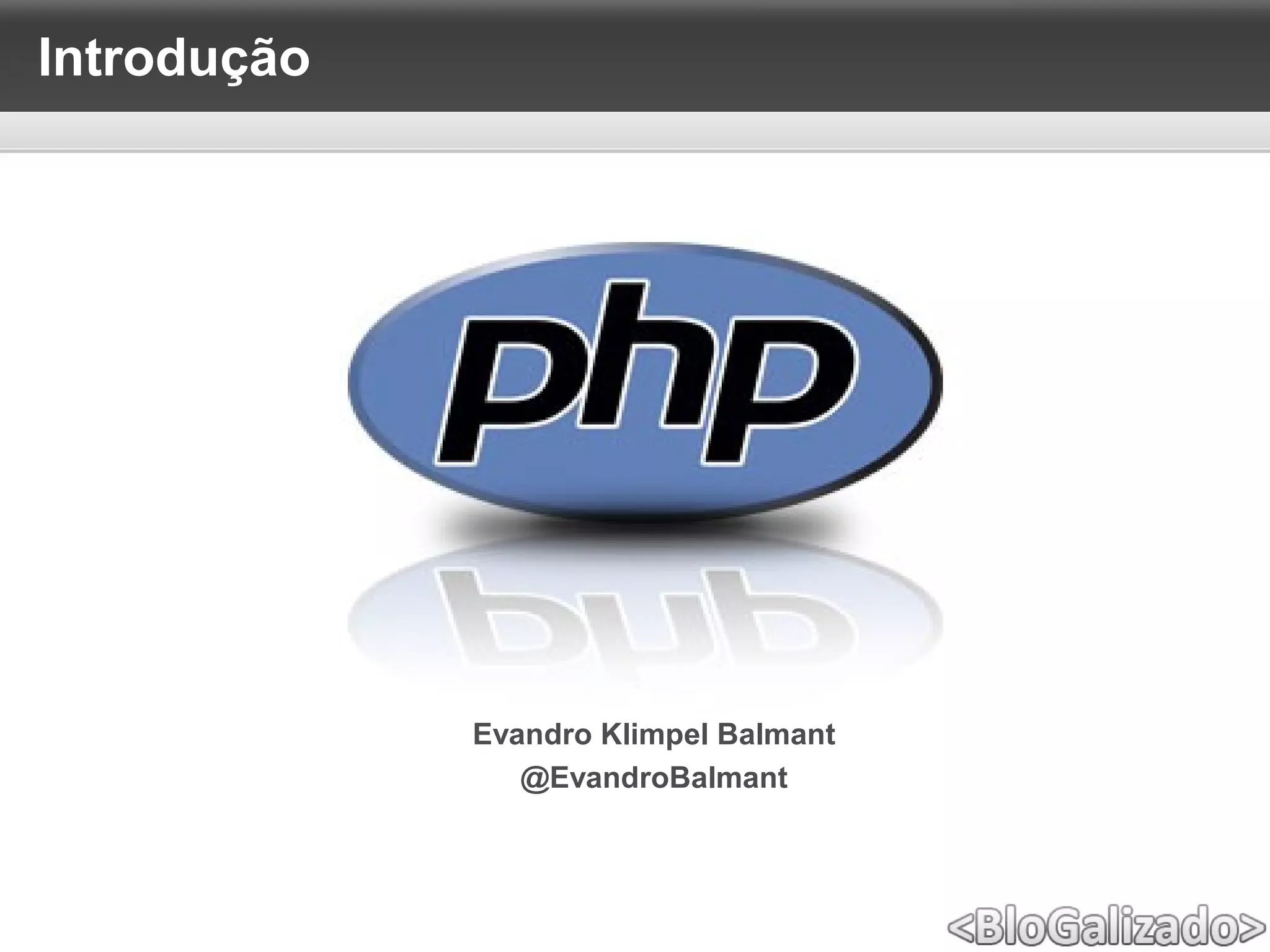 O documento apresenta uma introdução à história e conceitos básicos da linguagem PHP, desde sua criação por Rasmus Lerdorf em 1995 até os principais recursos atuais. É descrito o desenvolvimento do PHP ao longo dos anos, citando seus criadores originais e as principais versões lançadas. Também são apresentados tópicos como sintaxe básica, tipos de dados, estruturas de controle, orientação a objetos, programação para web com superglobais e interação com banco de dados MySQL.