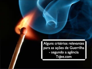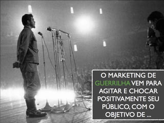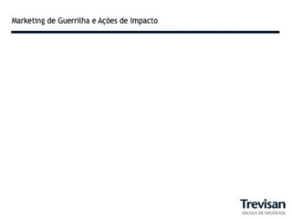 O marketing de guerrilha, introduzido por Jay Conrad Levinson, refere-se a estratégias não convencionais, de baixo custo, voltadas a nichos específicos. Em um cenário de saturação publicitária, a abordagem busca impactar e emocionar os consumidores de forma surpreendente e relevante. Para uma execução bem-sucedida, são necessários planejamento, definição de público-alvo e criatividade na execução das ações.