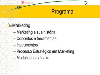 O documento aborda os fundamentos de marketing, explorando sua história, conceitos e ferramentas, assim como metodologias de ensino e avaliação utilizadas no curso de especialização da Universidade Federal do Amazonas. Define marketing em termos de entender e atender ao mercado, enfatizando que essa prática evoluiu desde mercadores antigos até a necessidade de adaptação às demandas de consumo atuais. Discute ainda a segmentação de mercado, o comportamento do consumidor e a importância de estratégias de marketing no sucesso empresarial.