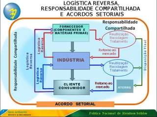 O documento discute o gerenciamento de resíduos sólidos, definindo termos como meio ambiente, resíduo e impacto ambiental. Apresenta a Política Nacional de Resíduos Sólidos no Brasil e aspectos do gerenciamento de resíduos sólidos industriais, incluindo controle de geração, caracterização, manuseio e disposição final.