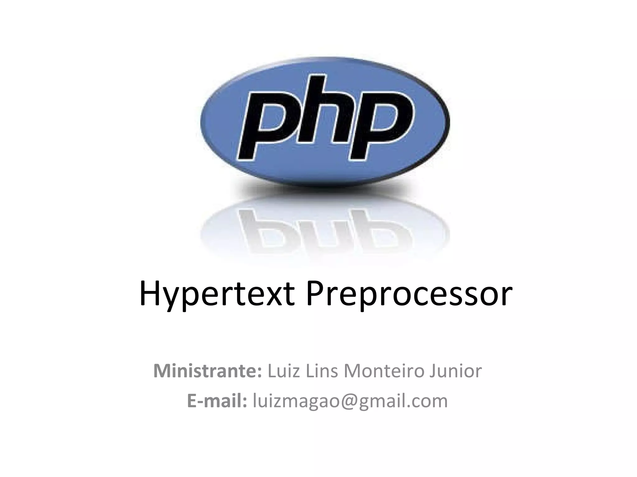 O documento fornece uma introdução ao PHP, incluindo sua história, características, sintaxe básica e conceitos importantes como variáveis, arrays, formulários e estruturas condicionais.