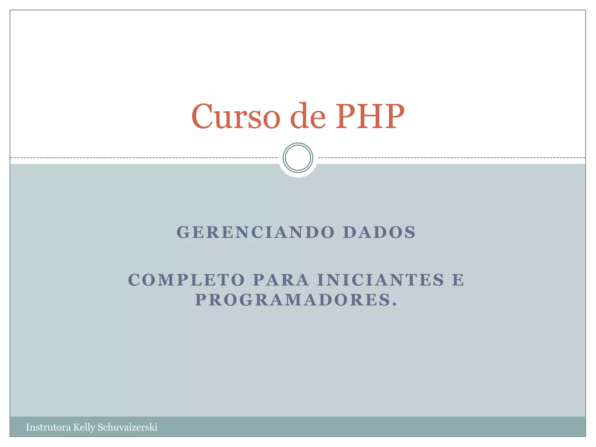 Este curso de PHP ensina a manipular dados com 114 videoaulas, cobrindo conceitos básicos, intermediários e a criação de um projeto. Os alunos aprenderão a usar funções e estruturas condicionais para manipular variáveis, strings, arrays, datas e arquivos, além de acessar e gerenciar dados em bancos MySQL.