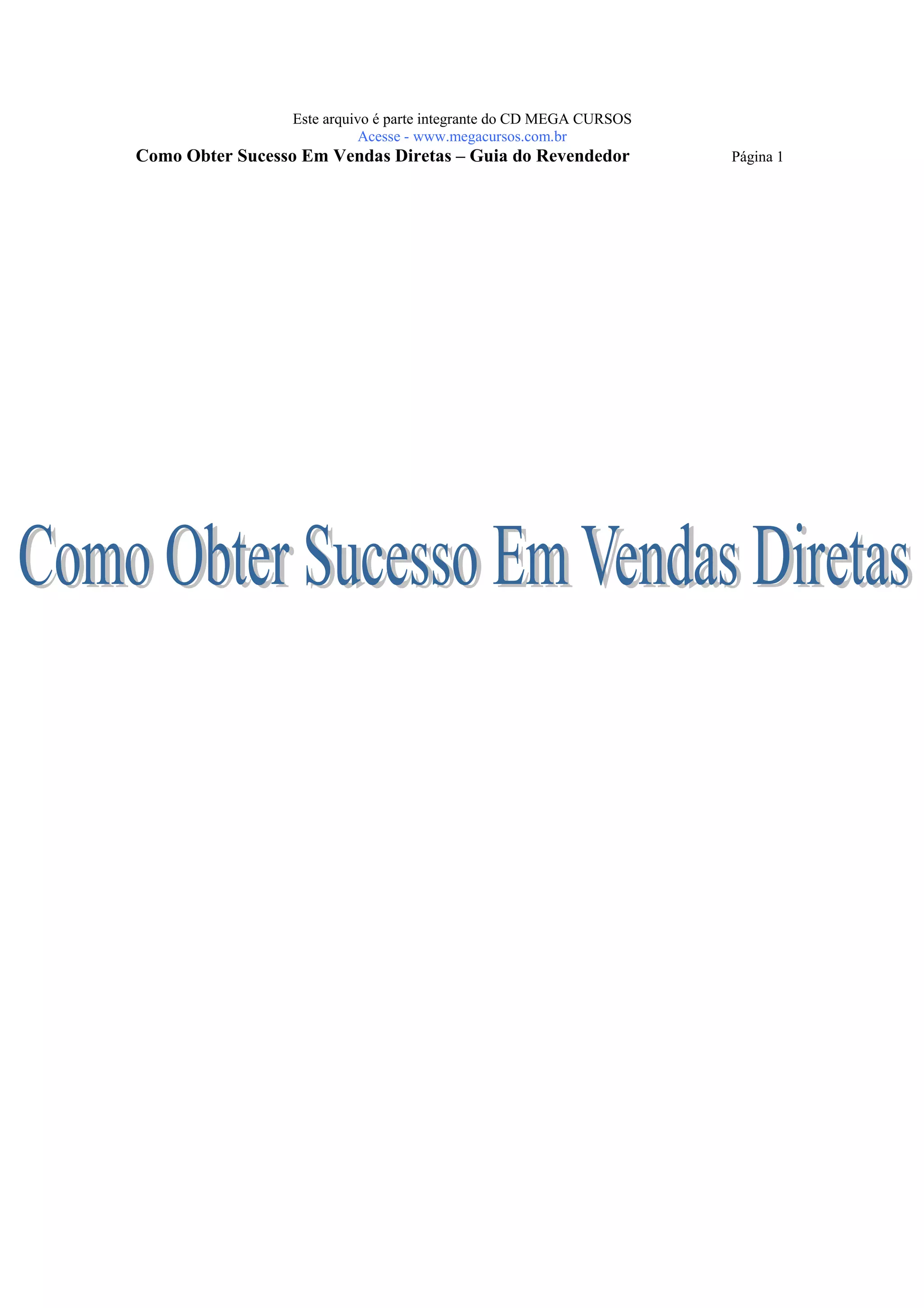 O documento é um guia para revendedores sobre como ter sucesso em vendas diretas, abordando temas como definição de metas financeiras, comprometimento, flexibilidade e a importância dos relacionamentos. O autor, Getúlio Barnasque, compartilha estratégias para expandir a rede de contatos e evitar a 'síndrome da falta de clientes', enfatizando a persistência e o profissionalismo no setor. O objetivo é fornecer ferramentas práticas para aumentar a renda e a performance de vendas dos revendedores.