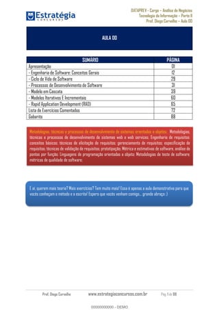 1) Uma aula introdutória sobre engenharia de software, ciclo de vida de desenvolvimento e processos para o concurso de analista de negócios da DATAPREV;