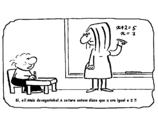 O documento discute a história da resolução de equações ao longo dos séculos, desde os egípcios até os árabes. Os egípcios resolviam equações de forma complexa através de métodos geométricos. Os árabes progrediram na resolução de equações ao denominar o valor desconhecido de "coisa", dando origem ao símbolo x. O Papiro de Rhind, do antigo Egito, contém os primeiros registros de equações na forma escrita, resolvidas por métodos como a "regra da falsa posição".