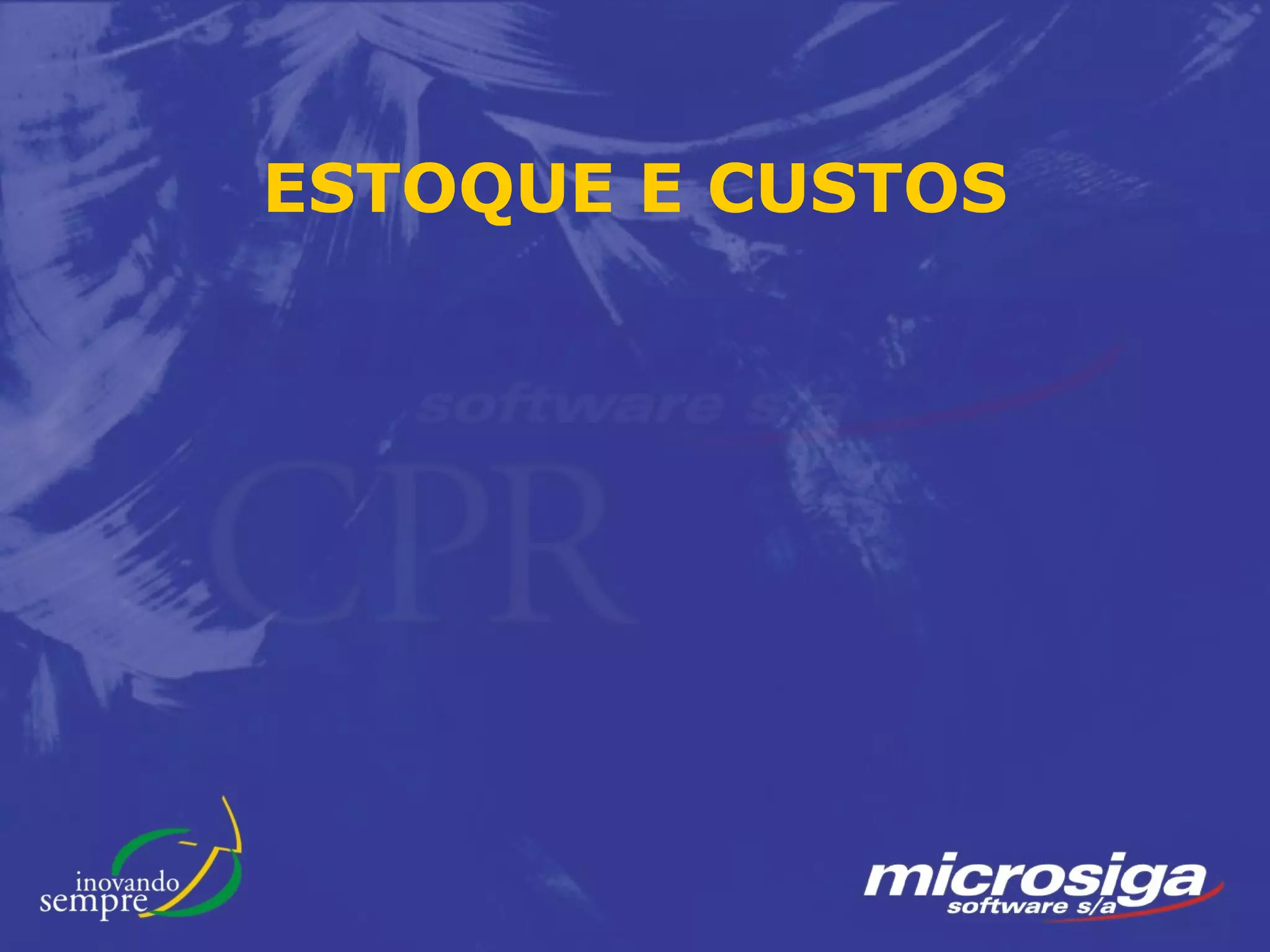 O documento discute sobre estoque, custos e processos de produção no sistema Protheus. Aborda tópicos como cadastro de produtos, estruturas, movimentos, TES, poder de terceiros, ordens de produção, explosão de necessidades e cálculo de custos.