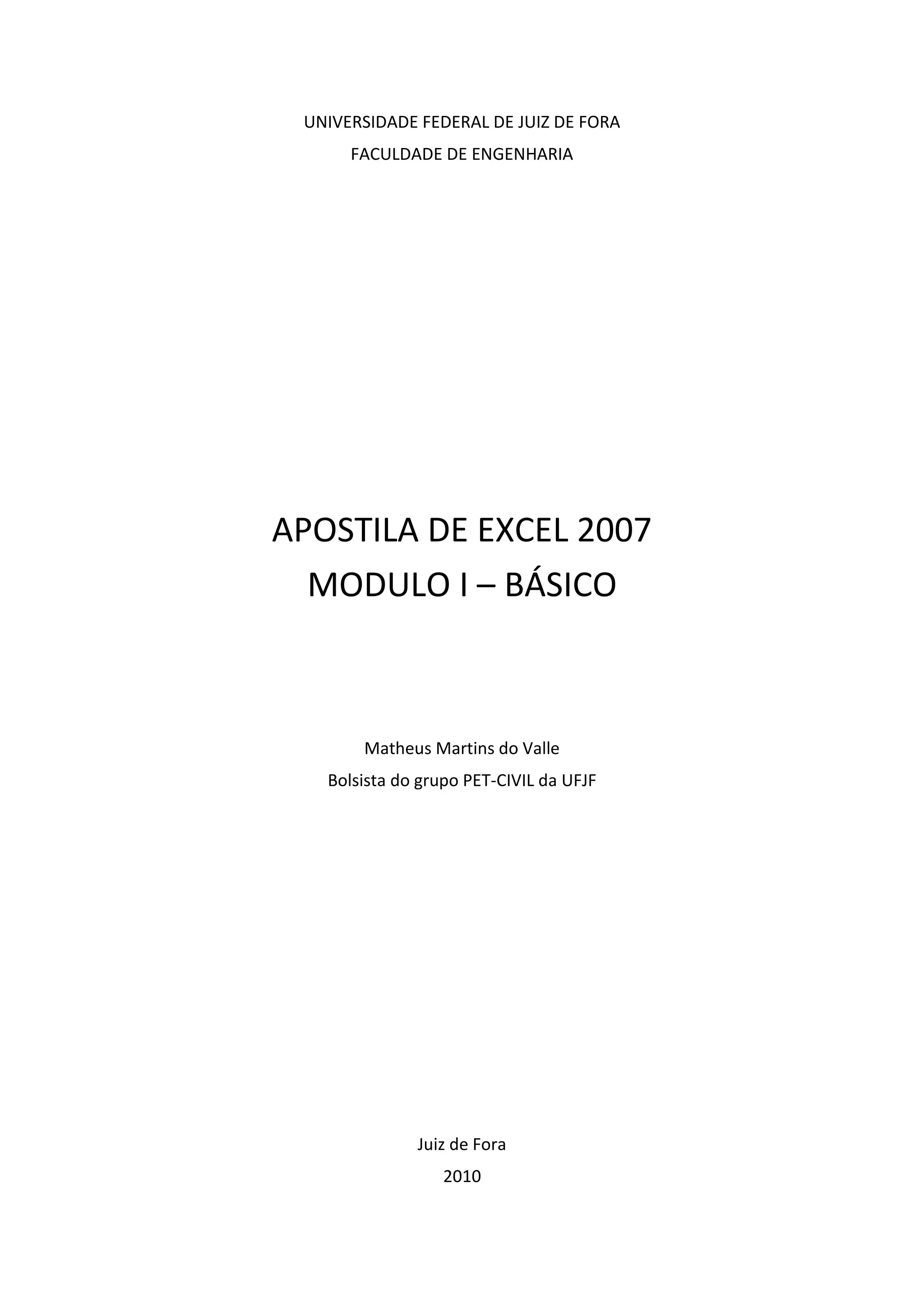Um dos objetivos desta apostila consiste em introduzir o programa para novos usuários, abrindo portas para que estes possam desfrutar desse programa, além de facilitar a migração dos usuários de versões anteriores do Excel 2007, e introduzir alguns comandos novos, desde recursos básicos até alguns pouco conhecidos, mas que podem melhorar e ampliar a utilização do software.