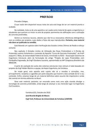 3. O autor ressalta que o objetivo é divulgar a tecnologia do concreto protendido e que o material está sujeito a revisões e sugestões de leitores.
