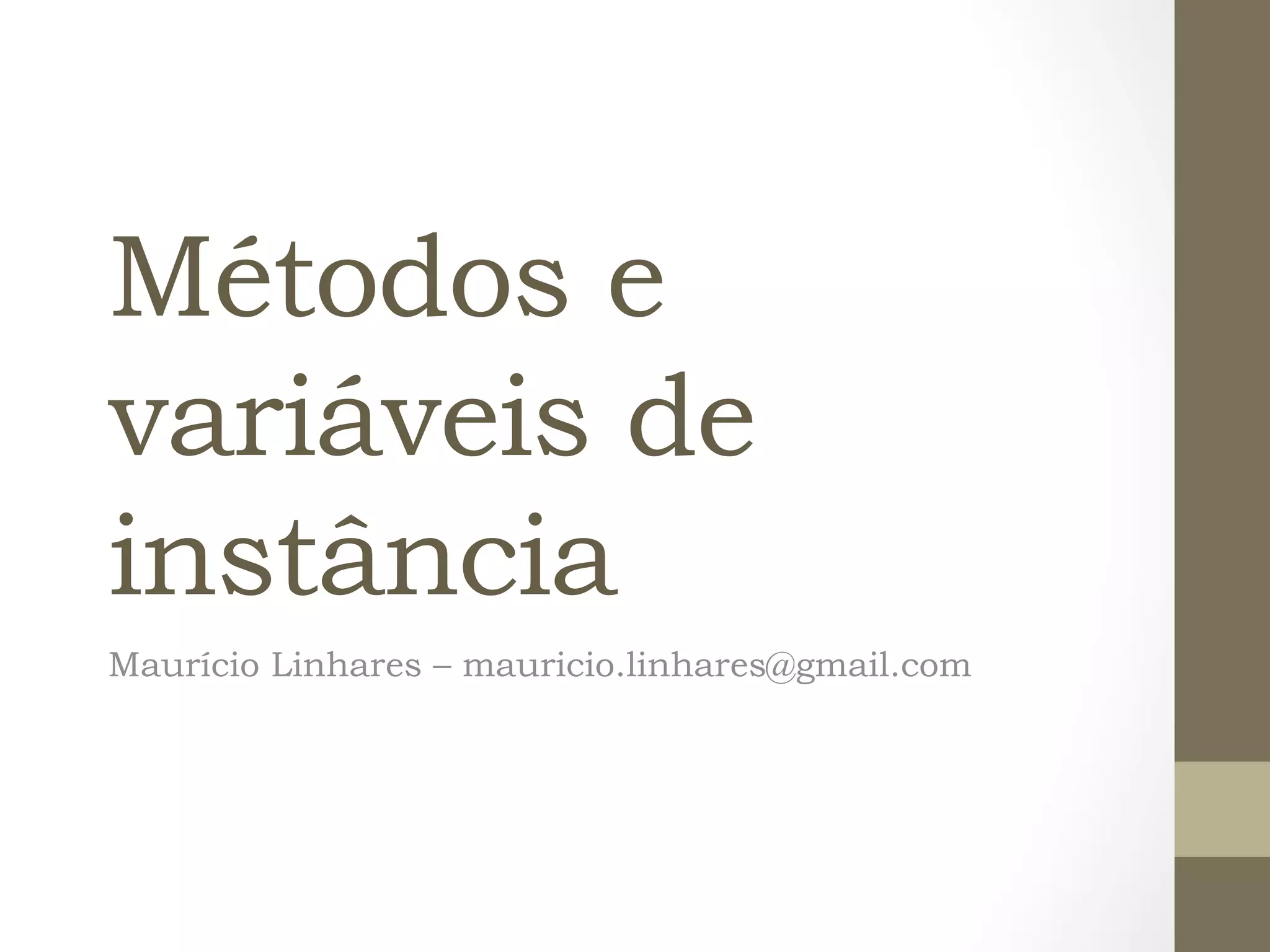2) Métodos acessam variáveis de instância de um objeto;