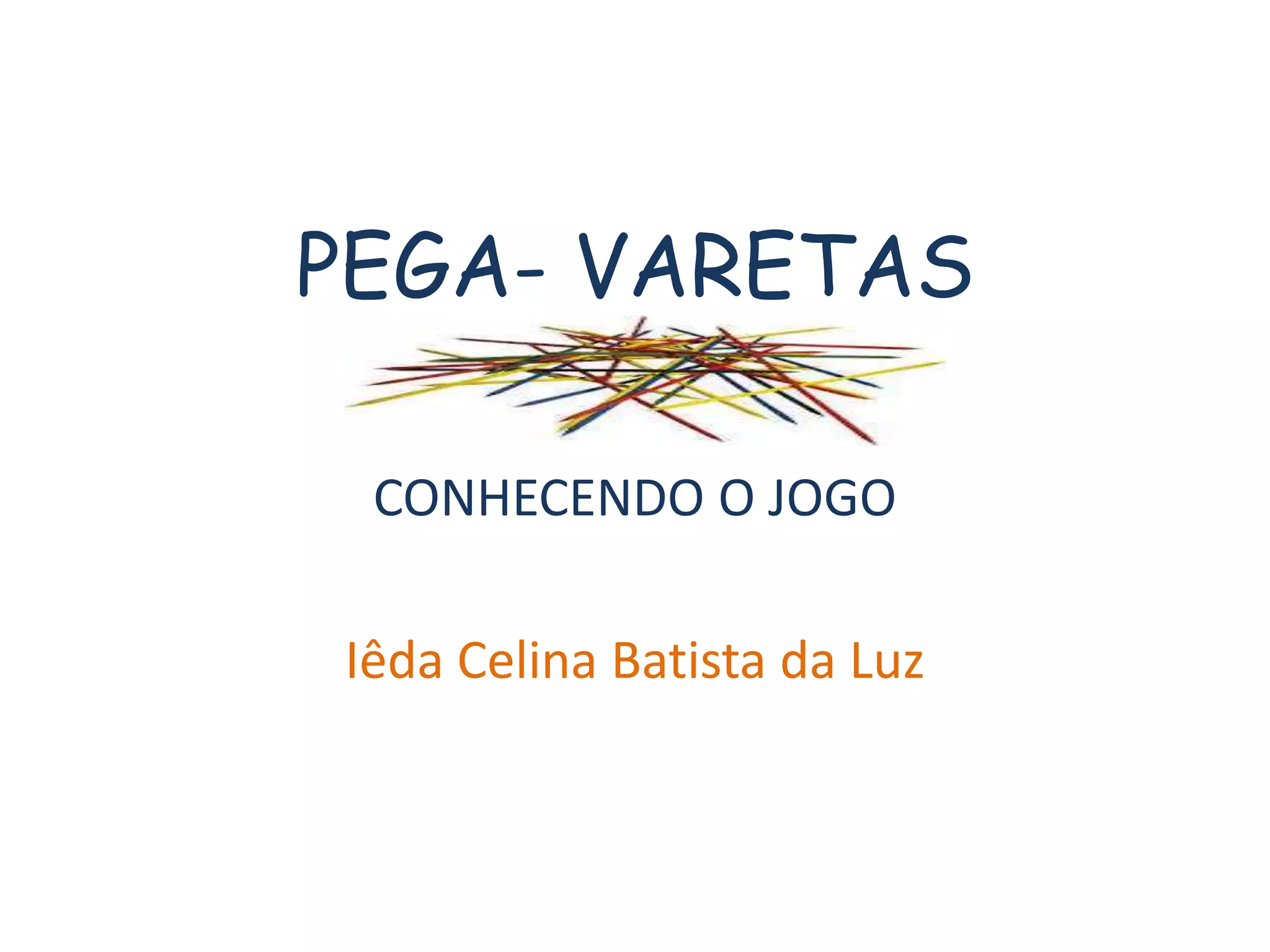 Este documento fornece instruções para o jogo "pega-varetas" e como adaptá-lo para diferentes idades de estudantes. Ele descreve como fazer as varetas, as regras do jogo, e como registrar as pontuações. O documento também fornece contexto histórico sobre as origens do jogo.