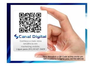 O documento descreve a história da empresa CANAL DIGITAL, fundada em 2000 por Allan Magalhães para oferecer serviços de internet. Atualmente a empresa atende 4 estados brasileiros e Allan também é professor, palestrante e diretor de tecnologia de outra organização. O documento fornece dicas sobre como empresas podem se comunicar melhor com clientes usando redes sociais e ferramentas digitais.