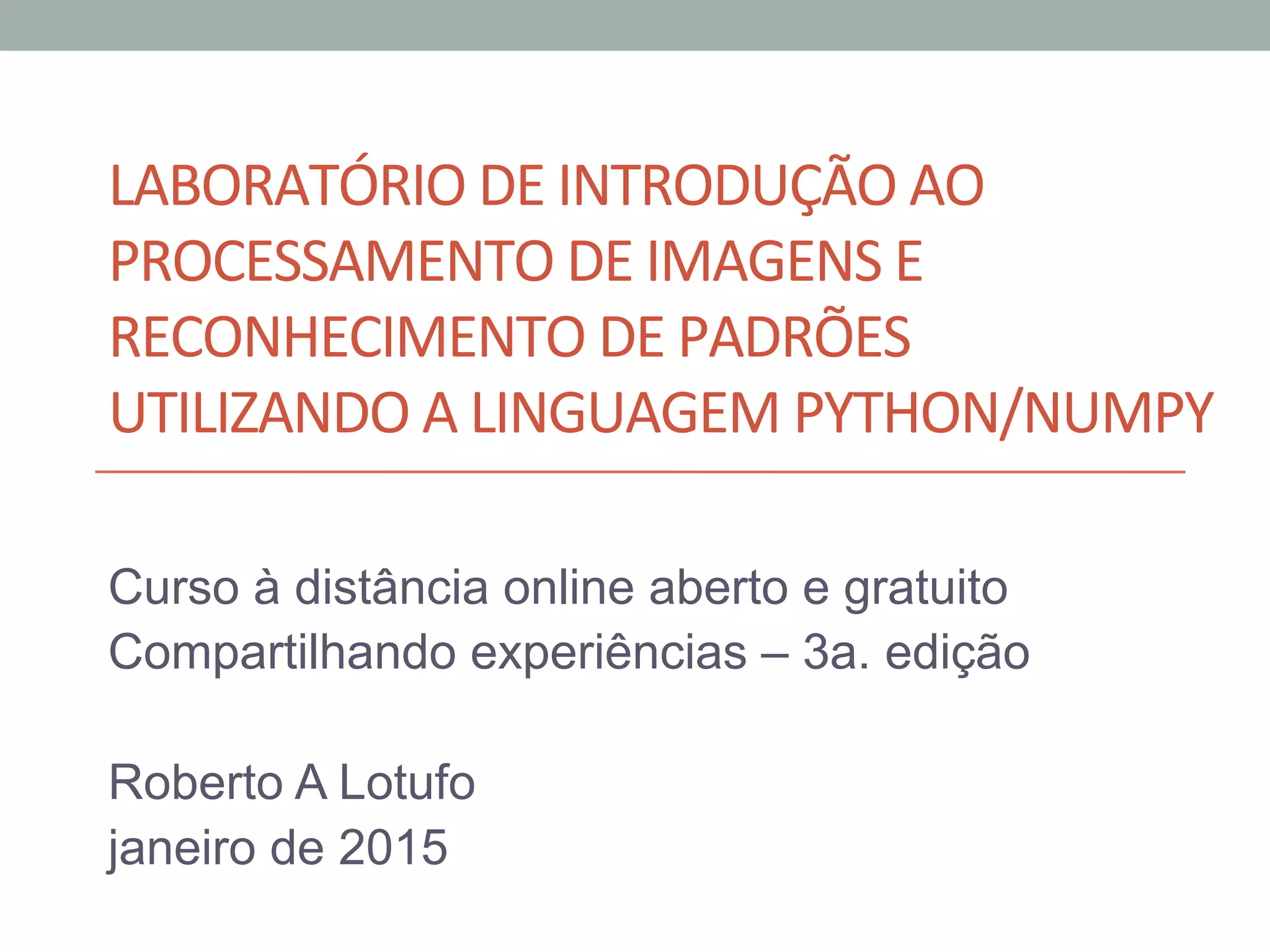 O documento resume a terceira edição do curso online e gratuito "Laboratório de Introdução ao Processamento de Imagens e Reconhecimento de Padrões Utilizando a Linguagem Python/NumPy". O curso teve 1866 inscritos, 770 editaram páginas, 148 completaram com 50% de aproveitamento. Houve melhorias como vídeos e assistentes, mas também desafios como baixa interação e necessidade de melhorar o material das últimas semanas.