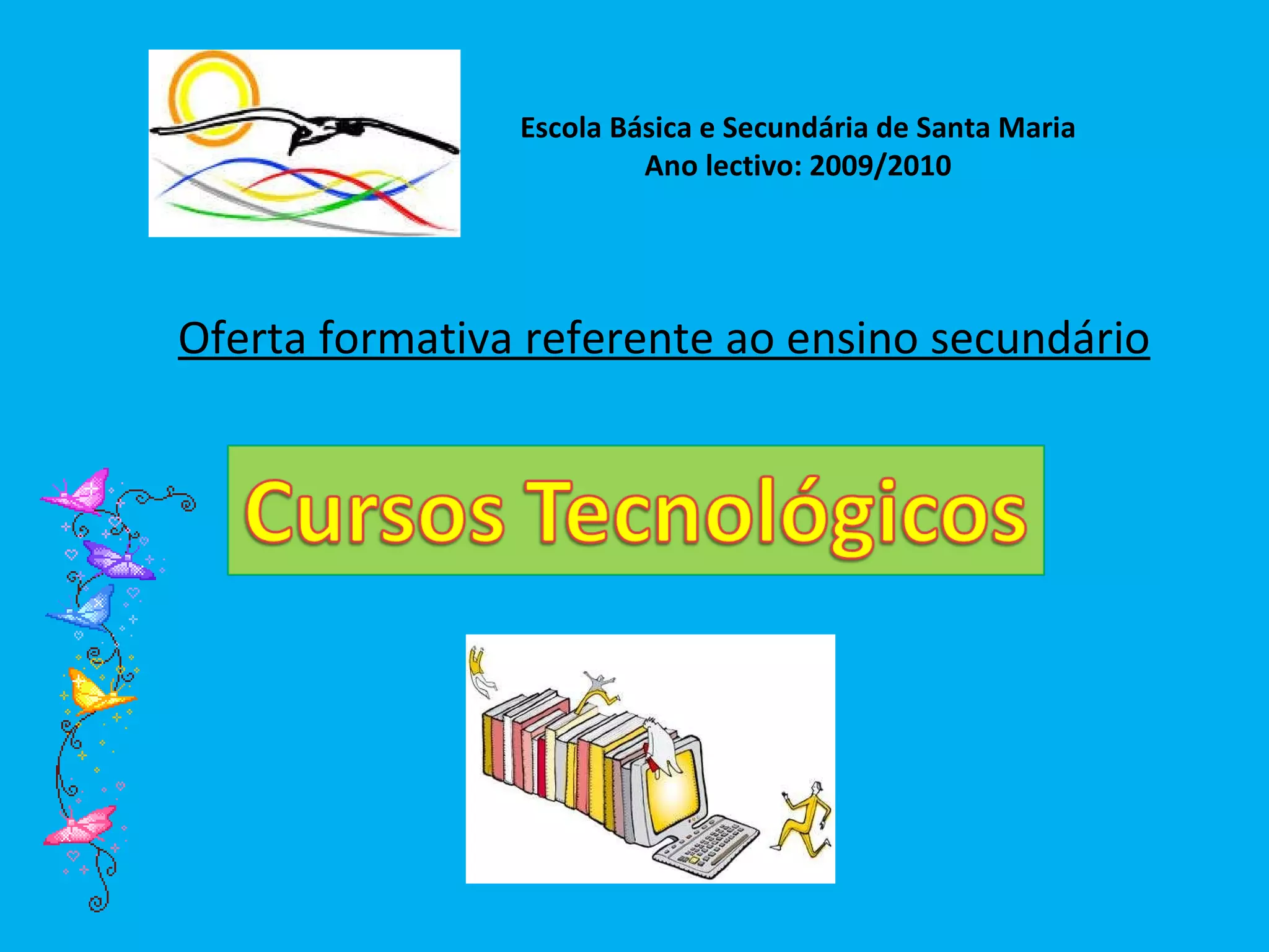 Este documento descreve os cursos de ensino secundário oferecidos por uma escola, incluindo cursos em Tecnologias da Informação e Administração e Gestão Empresarial. Fornece detalhes sobre as disciplinas, carga horária, saídas profissionais e requisitos de conclusão para cada curso.