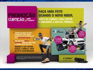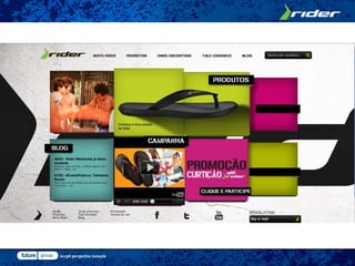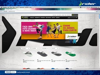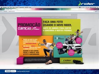 A Grendene lançou uma promoção para a marca Rider com o objetivo de engajar consumidores jovens e reforçar a posição da marca no mercado. Os participantes poderiam enviar fotos usando sandálias Rider para concorrer a prêmios como um Mini Cooper e itens Apple. A promoção foi divulgada nas redes sociais, site e TV e obteve bons resultados, como aumento nas vendas e na base de fãs da página da marca no Facebook.
