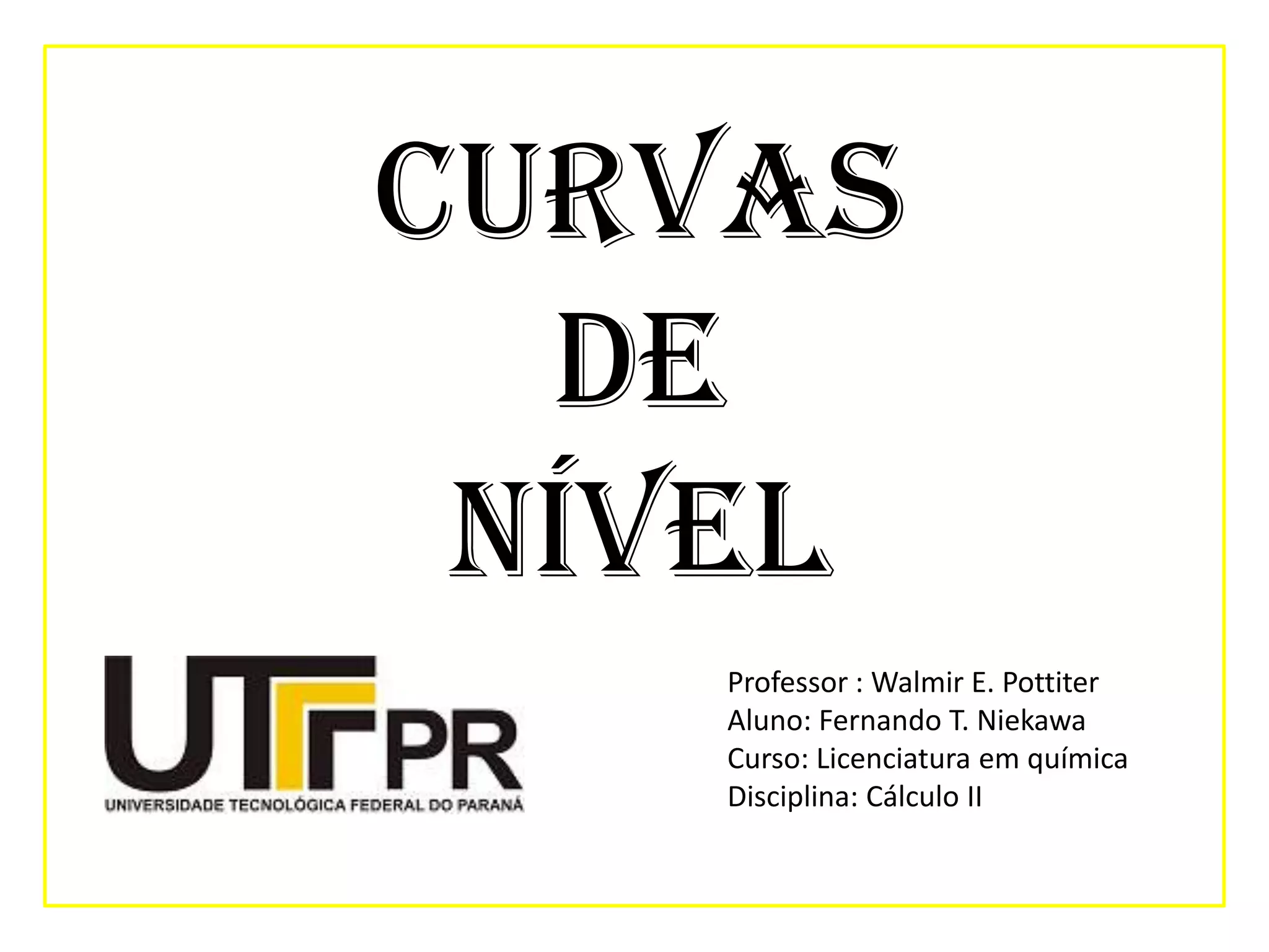 O documento explica o que são curvas de nível e como elas representam gráficamente funções de duas variáveis. As curvas de nível são conjuntos de pontos no plano xOy com a mesma imagem z. O documento fornece exemplos de curvas de nível para funções como z=x2+y2 e discute como elas podem representar quantidades físicas como temperatura, pressão e potencial.