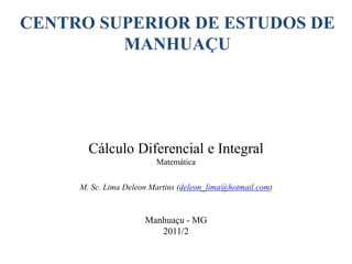 O documento apresenta uma introdução aos conceitos fundamentais do cálculo diferencial e integral. Em três frases ou menos, resume-se: