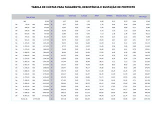 1) A tabela apresenta as taxas cobradas para pagamento, desistência e sustação de protesto de títulos no Brasil.