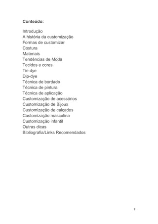 utilizar e as peças que podem ser customizadas. Além de dicas e