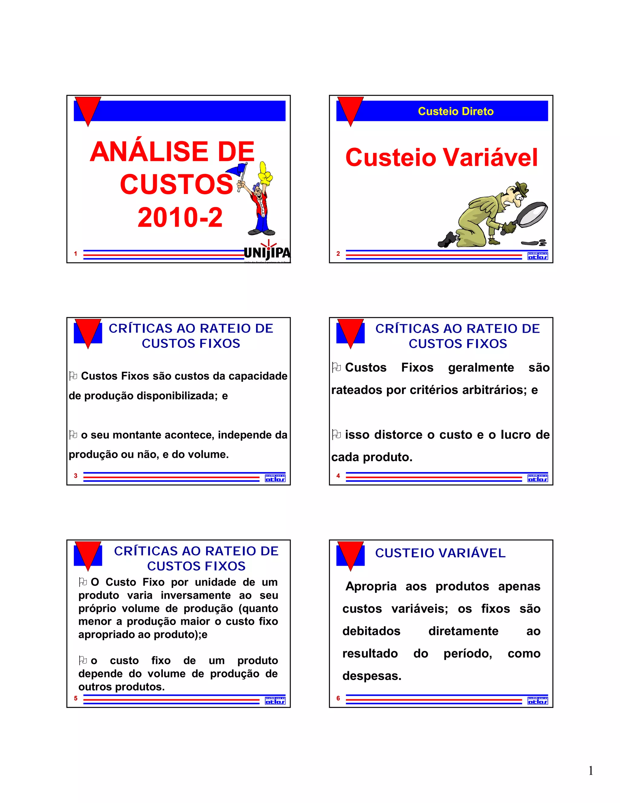 CRÍTICAS AO RATEIO DE                    CUSTEIO VARIÁVEL